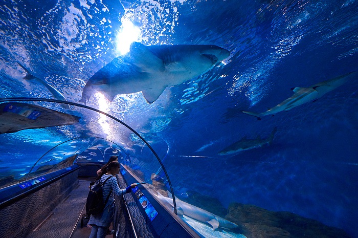 Уже больше 20 лет шанхайский океанариум остаётся одним из самых крупных и познавательных во всём мире. Тем более, что зона под названием «Глубины океана» находится под водой, попасть куда можно с помощью эскалатора. Зона состоит из нескольких туннелей, откуда открывается осмотр на 180 и даже 270 градусов - посетители могут со всей полнотой ощущений понаблюдать за движением акул или стаек маленьких цветных рыбок.