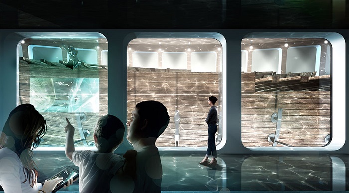 Ещё один концепт подводного музея, однако с историческим уклоном. Авторами проекта стали архитекторы ZJA Architects, которые решили сделать памятный объект для корабля «Амстердам», который во время своего первого плавания в 1749 году попал в шторм и потерпел крушение у берегов британского города Гастингс. Концепт предполагает сохранение судна с помощью переноса его в город Амстердам и застройки вокруг него полуподводного сооружения. Так и исследователи могли бы его изучить, и общественность получит возможность познакомиться с кораблём и его историей.