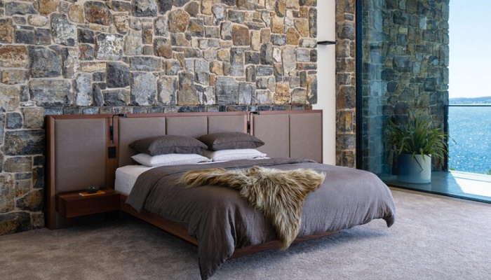 Натуральный камень используется в качестве эффектного акцента в оформлении интерьера каждой комнаты Tinderbox House (гостевая спальня). | Фото: walltype.art.