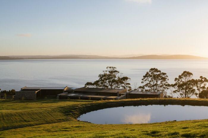 На австралийском острове Тасмания закончилось строительство загородного особняка, который надежно спрятан в склон холма с завораживающим видом на голубые воды океана. Семья из нескольких поколений пожелала иметь собственное убежище, которое находится на одной территории, но никак не ограничивает уединение и возможность вволю повеселиться с друзьями, когда другие мечтают о тишине и отдыхе. Как ни странно, но даже такие полярные желания удалось удовлетворить специалистам Studio Ilk Architecture + Interiors.