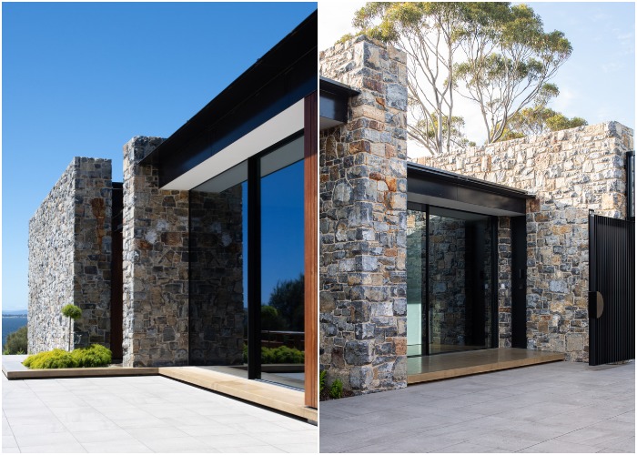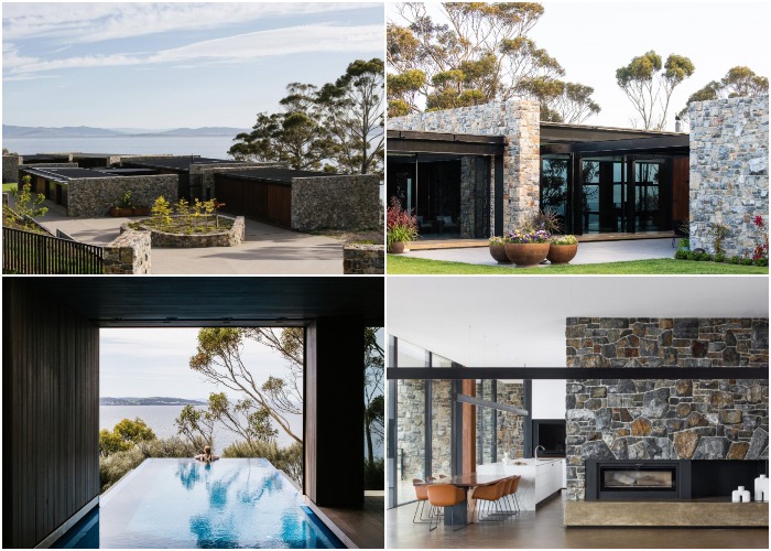 Аргиллит, дерево и стекло – основные материалы, из которых была построена загородная резиденция (Tinderbox House, о. Тасмания). | Фото: walltype.art.