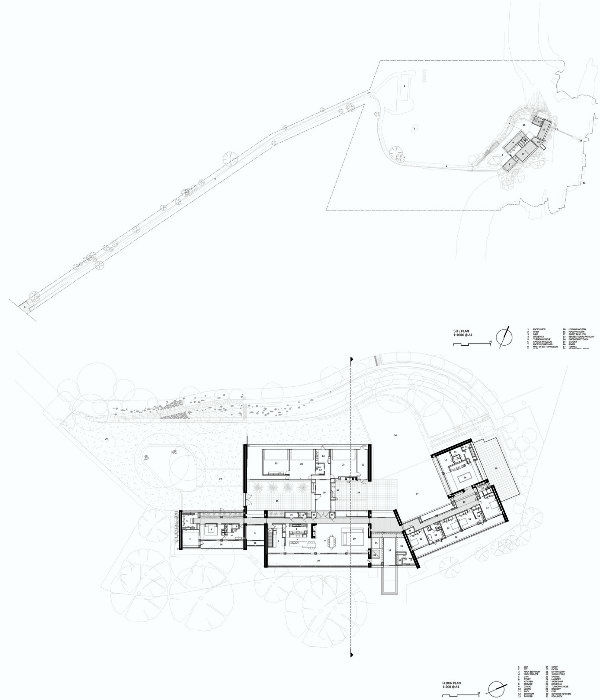 В этой ситуации главный вопрос был ориентирован на то, какие взгляды имеет новый владелец, и сможет ли их проект удовлетворить местные органы планирования. Первоначальная идея состояла в том, чтобы повторно использовать подготовленные котлованы, но уже согласно утвержденным разрешениям на строительство по новому проекту. В конечном итоге остановились на том, что были установлены дополнительные перегородки из камня и жилые помещения оказались частично спрятаны в глубине холма. Этому поспособствовали монолитные стены из местного камня, поднятые над ландшафтом, которые разделили отдельные блоки. Они также помогли обустроить внутренние дворы и балконы, обеспечивающие беспрепятственный вид на океан.