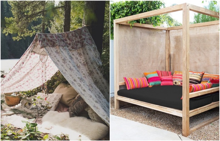 В качестве зоны отдыха можно соорудить шатер или топчан