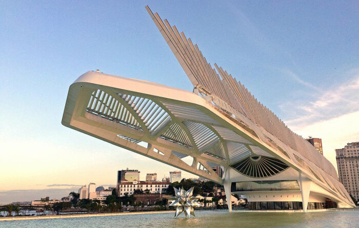 Дизайн музея Museu do Amanha («Музей завтрашнего дня»), разработанный Сантьяго Калатравой, настолько является впечатляющим, что описать его словами невозможно. Даже фотографии не передают ту фантастическую эстетику, которую можно ощутить только рядом с музеем. Уникальная конструкция «Музея завтрашнего дня» ассоциируется с космическим корабль, на котором приземлились инопланетные существа, чтобы насладиться красотой залива Гуанабара, у кромки которого и был построен гигантский объект. Хотя некоторые узнают в нем доисторического динозавра гигантских размеров.