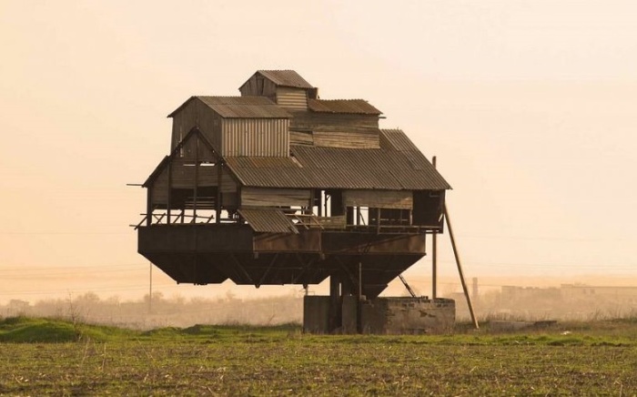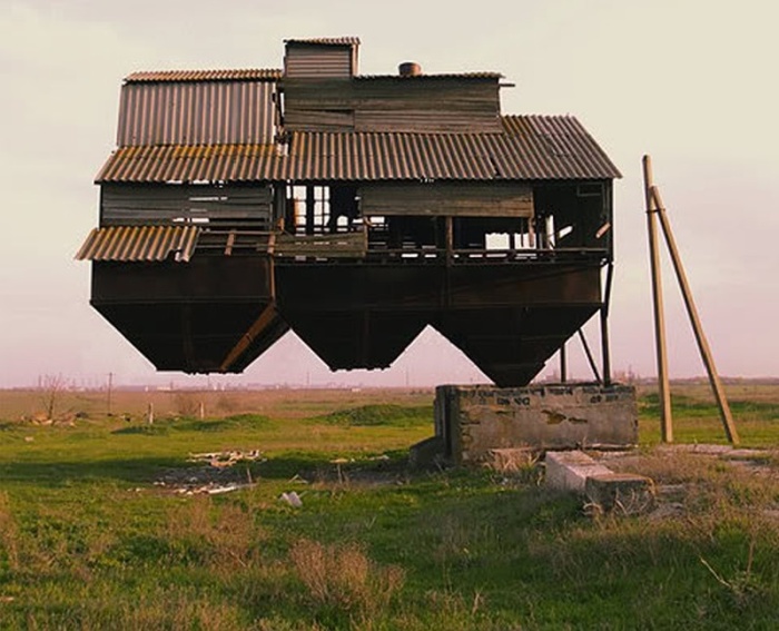 Точно сказать кто автор шедеврального склада, где до 2012 года хранились излишки минеральных удобрений и пестицидов, никто точно не возьмется. Хотя в Сети ходят различные шутки по этому поводу, вплоть до того, что к его созданию приложили руку, лапу или, что более подходяще, – щупальца инопланетные зодчие. До недавнего времени это чудо инженерной и архитектурный мысли (все-таки человечества) находилось в Коминтерновском районе Одесской области. К сожалению, загадочное «левитирующее» на единственной опоре масштабное строение, которое могло бы стать украшением любого фантастического фильма, разрушено.