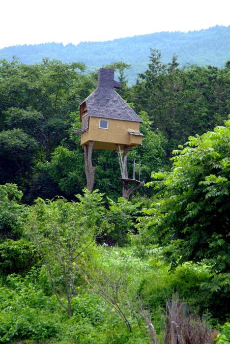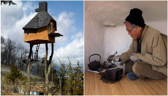 Необычная чайхана появилась в лесах Чино благодаря стараниям архитектора Терунобу Фухимори, которому пришлось даже привозить огромные каштаны из другого места, чтобы они смогли выдержать вес строения (их заглубили и укрепили стальными тросами). Чтобы попасть в «летающую грязевую лодку», как ее называют местные жители, нужно подняться по отдельно стоящей лестнице, которая опирается на один из двух каштанов, поддерживающих всю конструкцию. И лишь потом можно будет наслаждаться чашечкой вкусного чая, приготовленного собственноручно.