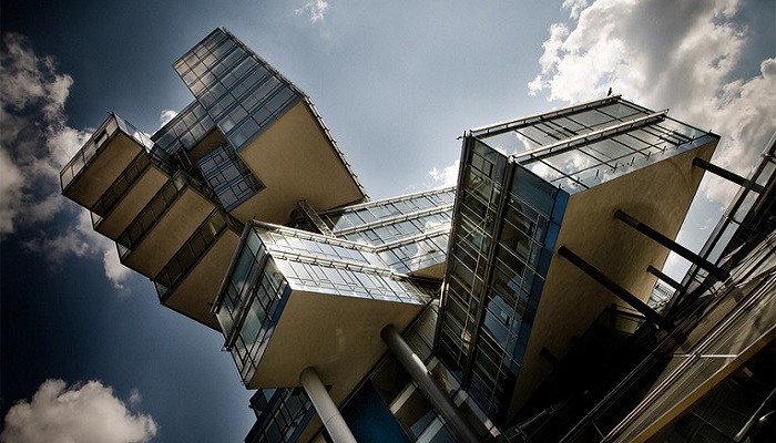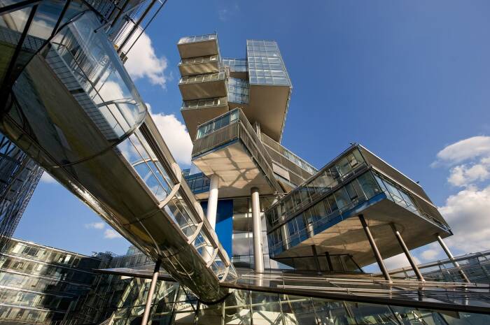 Футуристическое здание в центре Ганновера было построено в качестве штаб-квартиры для Немецкого земельного банка NORD/LB. Гигантское здание, занимающее площадь 40 тыс. кв. м, сложено в хаотичном порядке из множества стеклянно-стальных модулей, соединенных между собой эффектными цилиндрическими коридорами, которые напоминают трубы развлекательных аттракционов в аквапарках.