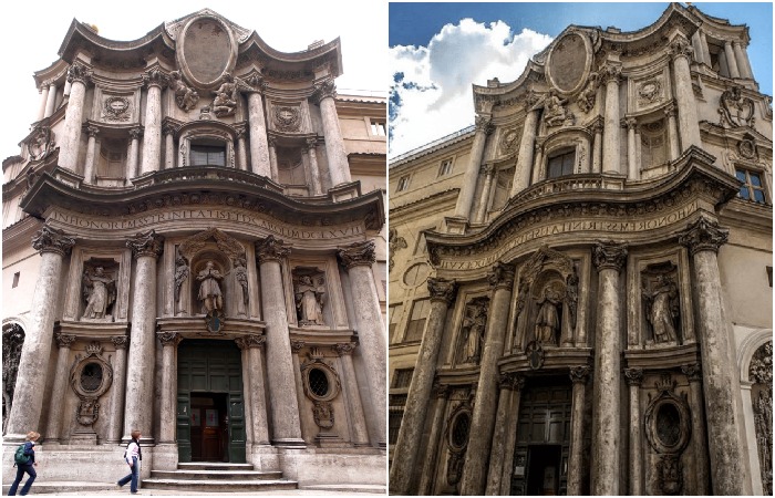 Идеи, воплощенные в формах и убранстве San Carlo Alle Quattro Fontane, стали культовыми для современников Франческо Борромини (Рим, Италия). ♦ Часовня C. San Carlo Alle Quattro Fontane в Риме (в переводе означает Святой Карл у четырех фонтанов) – это еще один запоминающийся пример архитектуры в стиле барокко. Отличительной особенностью этой церкви является поистине барочный центральный фасад с необычной кривизной «ущербной жемчужины». Автором проекта стал архитектор Франческо Борромини – один из основоположников римской архитектуры барокко. Часовня C. San Carlo Alle Quattro Fontane является венцом его творчества и считается одной из его лучших работ. Разработанный Франческо дизайн был настолько революционным, что вдохновил его современников повсеместно использовать подобные идеи и эффектные элементы.