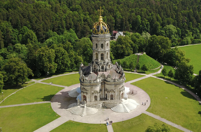 Одну из самых запоминающихся церквей Подмосковья патриарх Адриан отказался освящать из-за неподобающего для русского храмам вида (Храм Знамения Пресвятой Богородицы в усадьбе Дубровицы). | Фото: fiesta.ru.