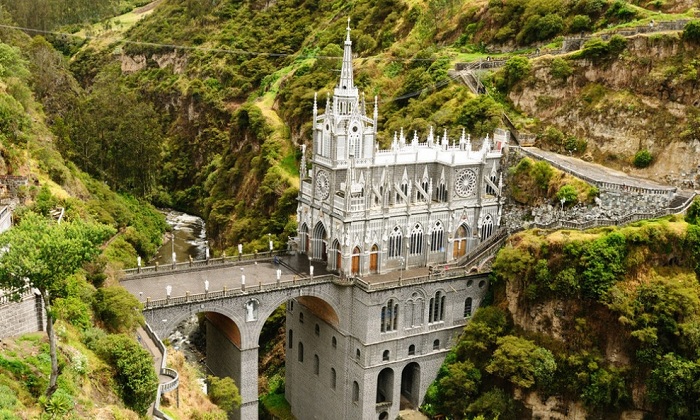 Собор Лас-Лахас можно без преувеличений назвать самым выдающимся религиозным архитектурным творением Колумбии, а построено оно бло в речном каньоне Гуаитары ещё в 1764 году. Почти двести лет спустя, в 1948 году, к нему пристроили арочный тридцатиметровый мост, соединяющий обе стороны ущелья, который идеально вписался в ансамбль, как будто с самого начала там был. Знаменит собор не только своим завораживающим внешним видом, сходным со средневековым замком, но и религиозной реликвией - наскальной иконой, на которой изображена Дева Мария с ребёнком на руках, которое было нарисовано давно, а яркости красок не теряет даже при отсутствии реставрационных работ