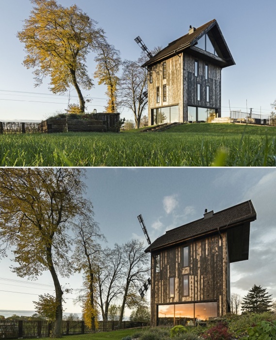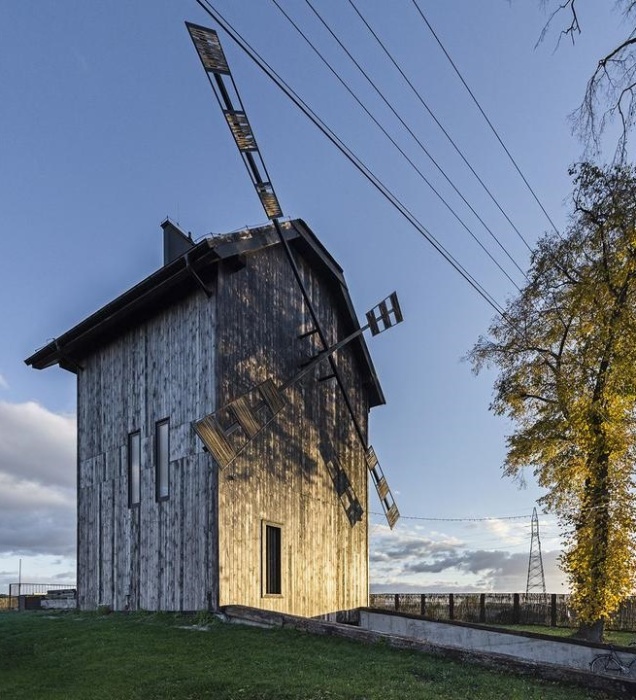 В окрестностях Любартува, что в Любинском воеводстве Польши, есть старая мельница, которую группа молодых креативных архитекторов, представляющих студию O4 Architects, превратили в эффектную загородную резиденцию под названием Dom Wiatrak. Предыстория проекта восходит к 2014 г., когда амбициозные польские архитекторы Михал Кухарски и Томаш Падло (Michał Kucharski, Tomasz Padło) на Международном конкурсе под названием «Современный загородный дом» представили интересную концепцию трансформации старой мельницы в комфортабельное современное жилище. В рамках конкурса, которую организовало пражское издательство FOIBOS Books для студентов-выпускников факультетов архитектуры стран Вышеградской группы и Словении, неординарный проект был отмечен премией, но дальше дело не пошло.
