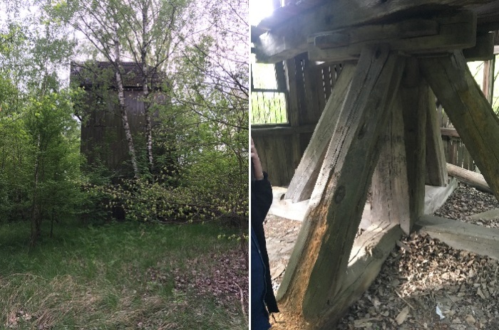 По сведениям авторов Novate.ru, на месте демонтированного объекта появился железобетонный каркас такого же размера, как и мельница (6,5 на 6,5 метров). Подземный этаж был сделан из железобетонных блоков, как и плиты перекрытия на остальных уровнях, а вот для надстройки, достаточно было установить 4 опоры, надежной утеплить строение и обшить «состаренным» деревом.