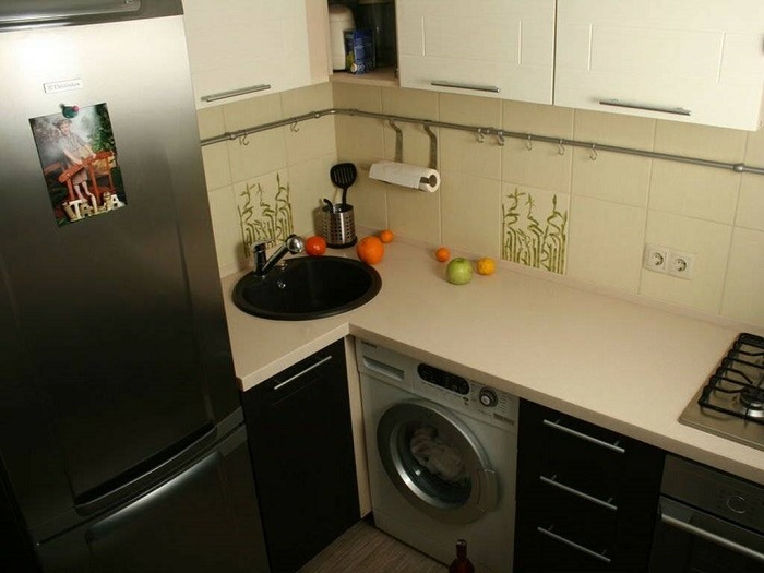 Когда в квартире маленькая кухня, идея о расположении мойки в углу приходит сама собой. Это экономит место и позволяет разместить в комнате все, что нужно. Однако есть нюанс – в такой раковине неудобно мыть посуду, а ведь именно с этой процедурой приходится сталкиваться несколько раз в день. Вот и получается, что уже через несколько месяцев после ремонта хозяйка начинает вспоминать угловую мойку не злым тихим словом. К тому же подобное расположение существенно усложняет уборку столешницы. Да и современные дизайнеры советуют устанавливать раковину ближе к окну, чтобы солнечные лучи хорошо освещали зону и не приходилось каждый раз включать люстру.
