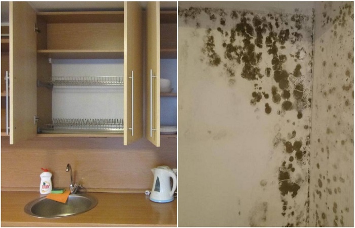 3. Плесень в шкафу для посуды