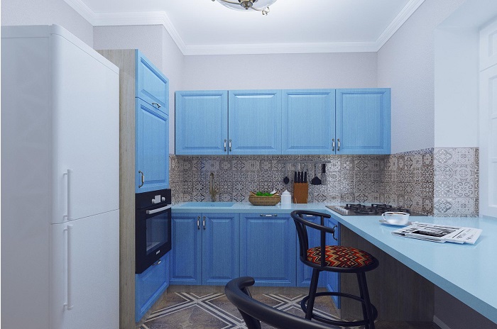 Голубой гарнитур на кухне отбивает аппетит. / Фото: krot.info