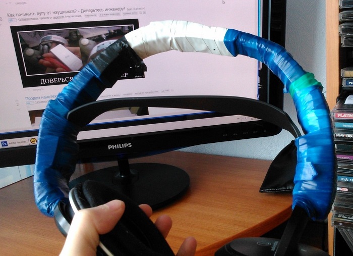 Наушники перемотали скотчем, чтобы вернуть работоспособность. / Фото: m.fishki.net