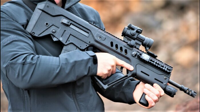 Штурмовая винтовка израильской разработки и производства. Автомат выпускается в пяти модификациях в зависимости от сферы назначения: армия, полиция, войска специального назначения. Отличаются винтовки с компоновкой булл-пап главным образом массой – от 2.95 до 3.67 кг. И предсказуемым образом калибром. Автоматы TAR-21 могут использовать в разных модификациях патроны 5.45х39 мм, 5.56х45 мм, 9х19 мм. На вооружении Израиля винтовка стоит с 2004 года.