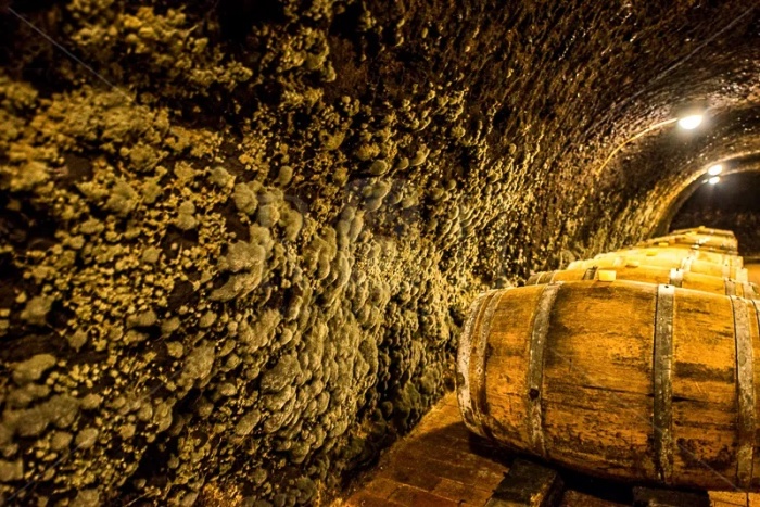 По сведениям авторов Novate.ru, в этих погребах круглогодично сохраняется стабильная температура в пределах 10-12 градусов. Но не это главное в таких сооружениях. Как оказалось, влажная среда и постоянная температура способствуют образованию на сводах галерей и туннелей из риолита специфического вида подвальной плесени под названием сladosporium cellare. Именно она и является особо ценным подземным организмом, способствующим правильной ферментации виноградного продукта. За несколько десятилетий на всех каменных поверхностях появляется слой этой плесени, и только лишь тогда, когда он достигает 1-3 см, в погребе может сформироваться благоприятный микроклимат для дозревания и хранения известного на весь мир токайского вина.