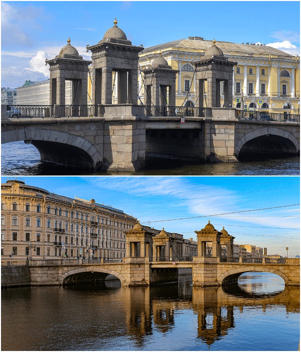 Через Фонтанку переброшен еще один довольно примечательный мост, который несколько раз менял название. Изначально его посвятили Екатерине Великой, затем графу Чернышеву, а в 1948 году его переименовали в честь величайшего ученого – Михаила Ломоносова. Учитывая, что Фонтанка в XIX веке была судоходной рекой, он был оснащен подъемными механизмами, но после реконструкции (деревянную конструкцию заменили на каменную), произошедшей в 1913 г., его подъемные пролеты заменили на постоянные.