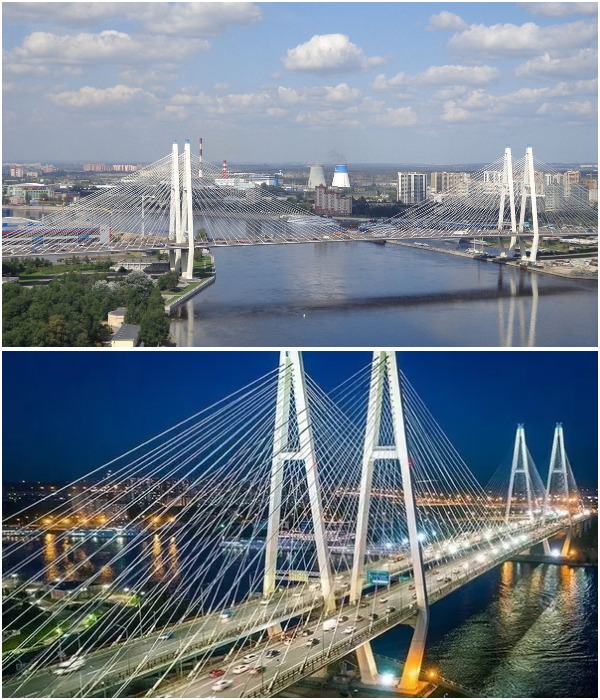 Это самый «молодой» мост, появившийся в Санкт-Петербурге в начале 2008 года, который навсегда соединил две части Северной столицы, что является диковинкой для судоходных городов. Эти мосты никогда не разводится, поскольку высота пролетов от уровня воды составляет 30 метров, так что теперь никто не может сказать, что опоздал к разводу мостов и заночевал у друга/подруги или на работе.