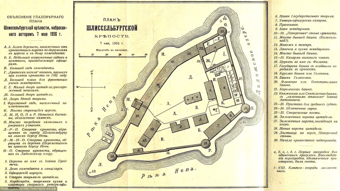 План Шлиссельбургской крепости в 1906 г. | Фото: nordlight-spb.livejournal.com.