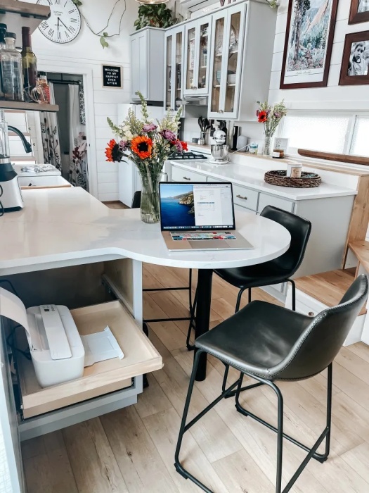 Обеденная зона легко превращается в домашний офис (Trailhead Tiny, Боулдер). | Фото: trailheadtiny.com.