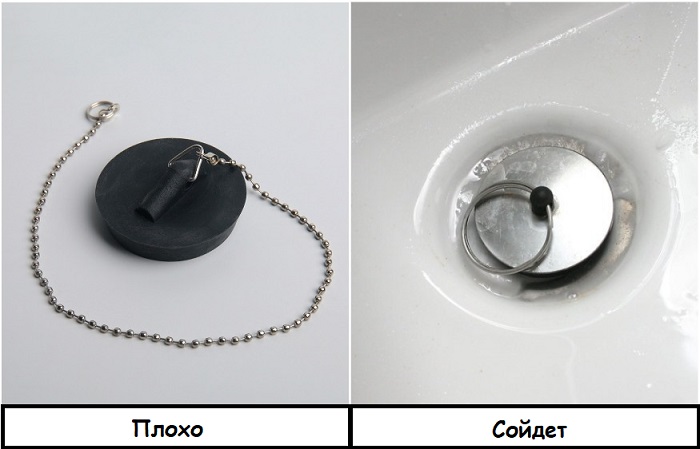 Да-да, резиновые пробки для ванны на металлической цепочке в одно время присутствовали, наверное, во всех квартирах. Однако их время истекло, чему мы безмерно рады. Мало того, что подобные пробки выглядят непрезентабельно и старомодно, они еще и неплотно прилегают к отверстию слива, особенно если у них внушительный «возраст». Что касается цепи, то она со временем ржавеет и оставляет на поверхности ванны подтеки, которые очень сложно вывести без специальной бытовой химии.
