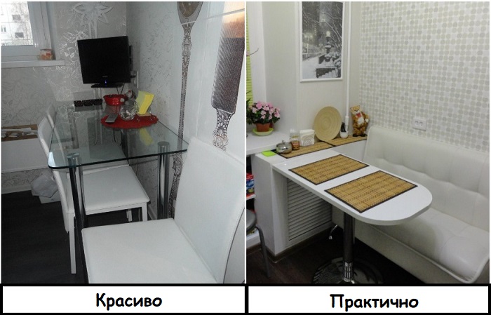 Однако, при всех положительных сторонах стеклянной столешницы, у нее есть и ряд недостатков, которые могут напрочь отбить желание ею пользоваться. На поверхности остаются разводы, поэтому просто протереть стол влажной тряпкой после трапезы будет недостаточно. Под мебелью видны ноги сидящих и беспорядок, если он есть, поэтому лучше ничего не прятать под стол в попытке быстро навести на кухне порядок. Как видите, прозрачность материала – не только его плюс, но и минус. Кроме того, тихо провести сервировку не получится – каждый раз, когда вы будете ставить тарелку на стол, станет раздаваться гул на всю квартиру, что тоже не очень приятно.
