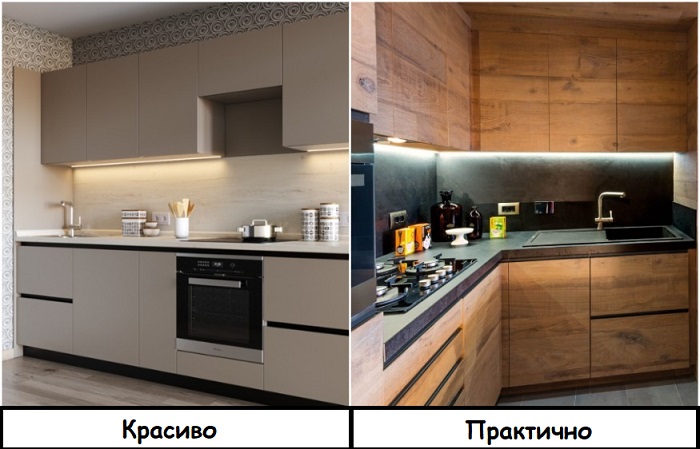 По мнению дизайнеров, такой прием делает интерьер кухни дорогим и благородным – нотки классики всегда действуют именно так. Бархатные фасады выглядят сказочно, добавляют текстуры. Рука к ним так и тянется: хочется пощупать, погладить. На материале не остается следов от пальцев, но… это не значит, что он устойчив ко всем остальным негативным факторам.