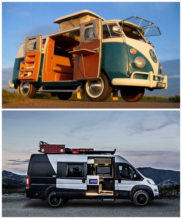 - Кемпервэн от англ. campervan – фургон для путешествий. Эти автофургоны создаются на базе минивэнов (самые популярные модели и марки – Volkswagen T6, Mercedes Viano, Hyundai Starex) и вмещают два спальных места, мини-кухонную зону и несколько систем хранения. Они могут быть оснащены подъемными крышами.