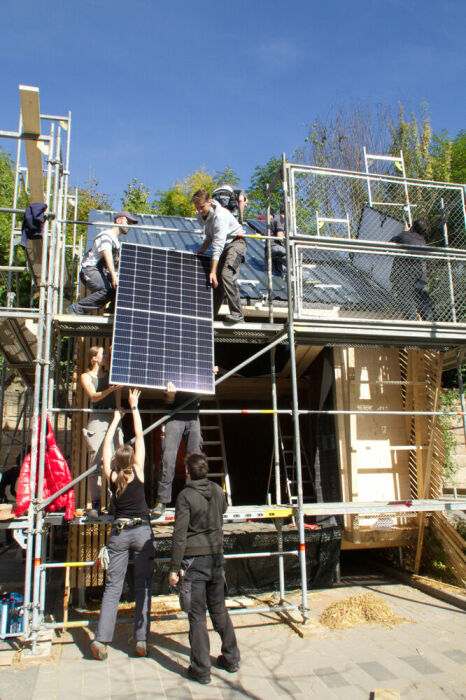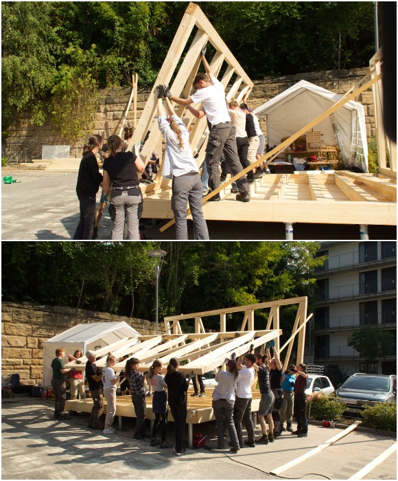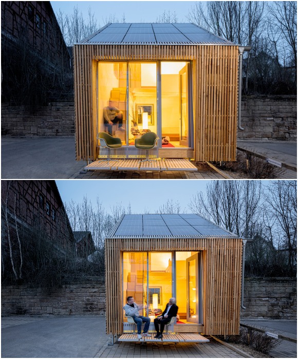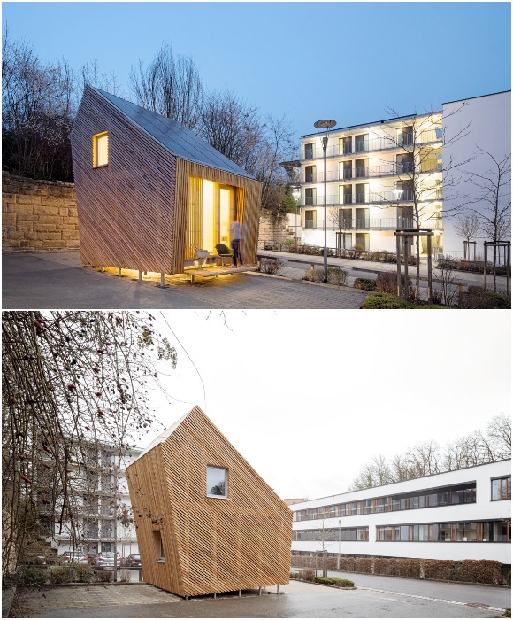 В современном мире все чаще звучит вопрос о том, как добиться устойчивости в архитектуре и обеспечить экологически чистым, а также доступным жильем людей. Эту задачу попытались решить студенты Кобургского университета прикладных наук и искусств под руководством профессора Райнера Хирта. Они спроектировали самодостаточный домик, при сборке которого не использовались строительные материалы, выделяющие углекислый газ, цемент и гвозди. При этом его легко, быстро и дешево можно собрать/разобрать и устанавливать на самом крошечном клочке земли, на крыше и даже парковке. Но на этом их эксперимент не окончен.