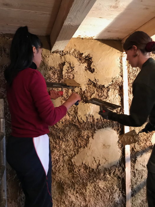 Студенты оштукатуривали стены эко-домика составом из глины и воды (Circular Tiny House CTH*1, Кобург). | Фото: latestnews.upexampaper.com.