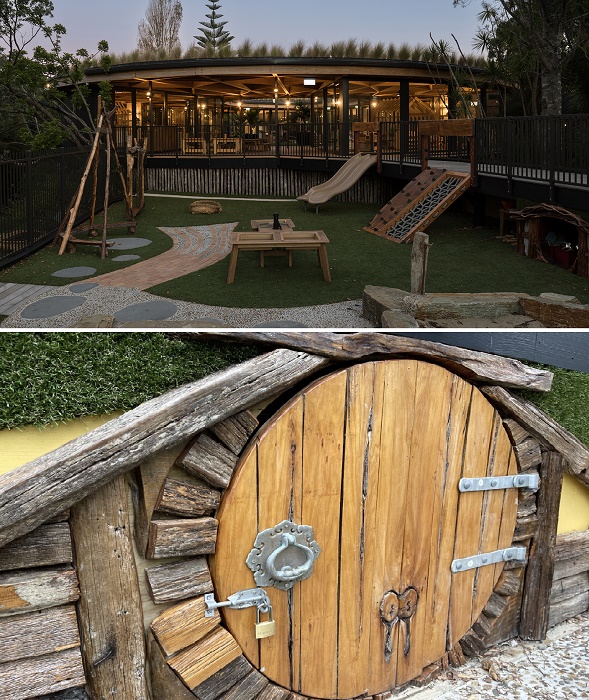 Внутренний дворик является местом отдыха и общения детишек (Kakapo Creek Children’s Garden, Новая Зеландия).