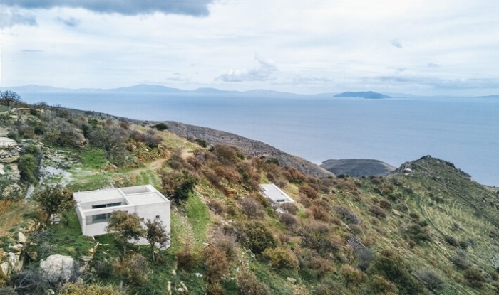 Из окон The Diagonal House отрывается прекрасный вид на живописный ландшафт и Эгейское море (о-в Кеа, Греция).