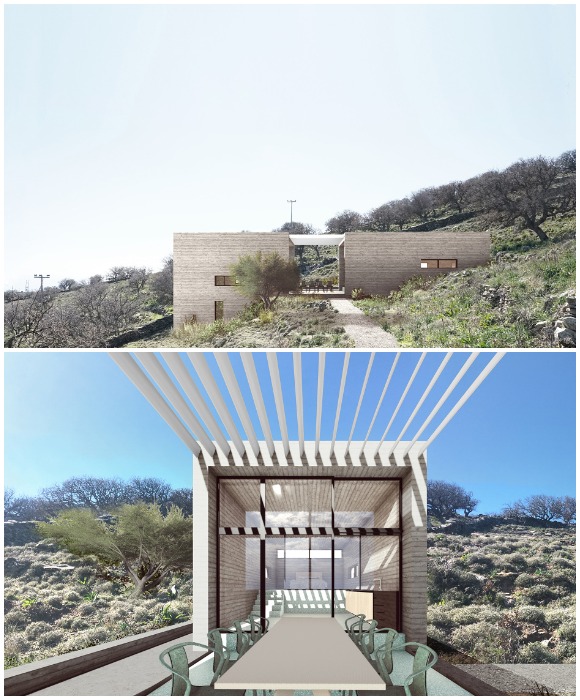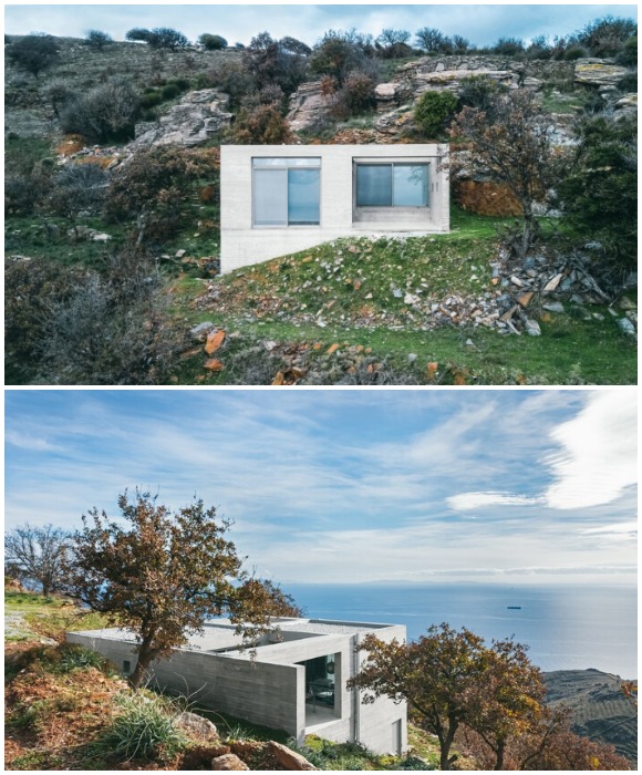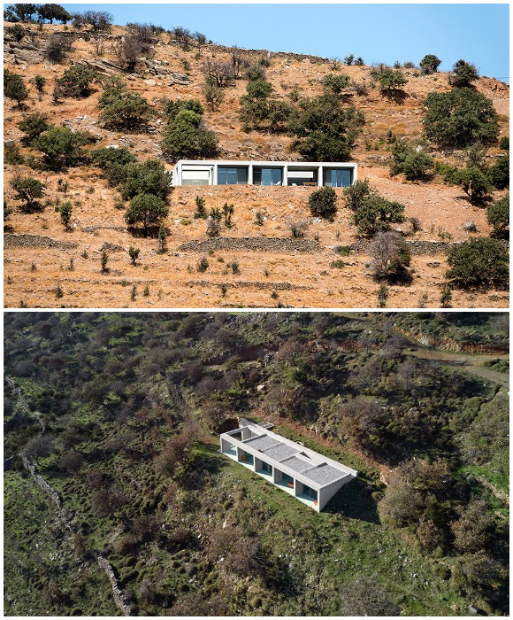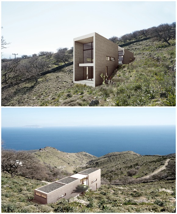 «Диагональный дом» расположен на том же склоне, что и «Параллельный дом» (о-в Кеа, Греция). | Фото: decor.design.