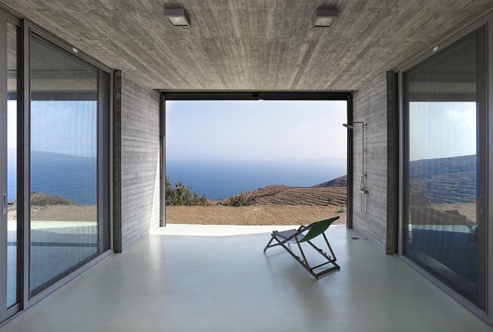 Душ и зона отдыха с видом на Эгейское море (The Parallel House, Греция). | Фото: decor.design.