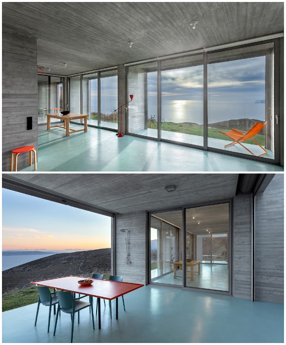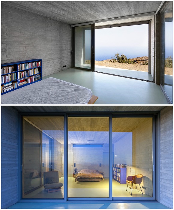 Стоит отметить, что и выбор строительного материала абсолютно идентичен в каждом из строений. Чтобы выделить архитектурные объекты на фоне природного окружение, и в то же время не создавать разительного контраста остановились на бетонных модулях, которые можно изготавливать на заводе и в готовом виде доставлять на место строительства. Плюс ко всему авторы проекта считают, что дом из бетона – это своеобразный аналог традиционного каменного жилища на современный лад. Такое переосмысление старинных методик строительства связно в первую очередь с внедрением активных и пассивных технологий энергоэффективности, ведь жилые объекты расположены далеко от цивилизации и подключение к центральным коммуникациям было недоступно. Специальный состав бетона, грамотное размещение самого дома, его высота, выбор направления окон и глухих стен помогают противостоять сильным ветрам и палящим лучам солнца, обеспечивая внутреннее пространство комфортной температурой без дополнительного использования соответствующего оборудования.