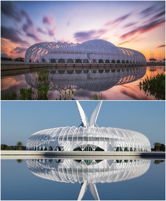 Кампус наук, инноваций и технологий Флоридского политехнического университета (Florida Polytechnic University или Florida Poly) по праву считается одним из самых прекрасных в мире. Да, это и не удивительно, ведь его проектировал сам Сантьяго Калатрава – гениальный архитектор современности, чьи произведения можно узнать из тысяч строений. Это первый архитектурный объект кампуса университета, который в скором времени заработает на полную силу в Лейкленде. Ну а пока, преподаватели и студенты могут довольствоваться единственным корпусом, расположенным среди озера, воды которого превращают его в завораживающее зрелище.