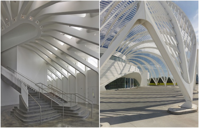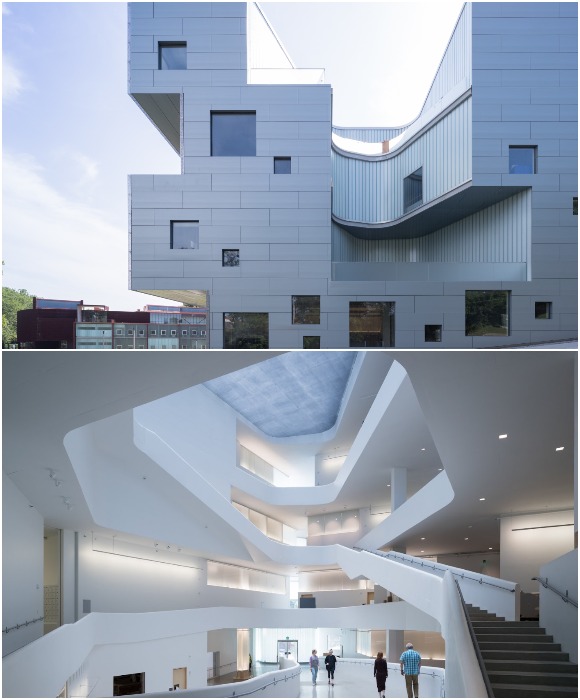Футуристические формы здания повторяются и в организации внутреннего пространства (University of Iowa, Stanford: The Art in STEM).