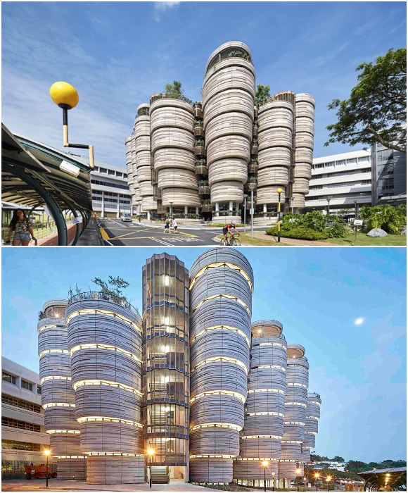 Благодаря атриуму на каждом этаже учебных корпусов имеются открытые балконы, утопающие в зелени (Nanyang Technological University, Сингапур). | Фото: timeshighereducation.com.