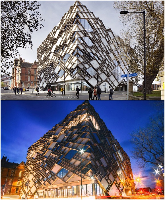 В кампусе Шеффилдскоого университета (Sheffield University) в 2016 году появился новый корпус для Инженерного факультета, который получил название The Diamond («Алмаз»). Удивительная форма здания, точнее сказать его ячеистая оболочка, напоминает молекулярную структуру алмаза, что и подтолкнуло к выбору названия. Ромбовидный узор сделан из анодированного алюминия и закреплен впереди железобетонной конструкции с масштабным остеклением, что выделяет его из общей массы исторических строений студгородка. Новый корпус является учебным центром крупнейшего факультета университета, в нем обустроены: 19 исследовательских и учебных лабораторий, 9 просторных лекционных залов, более тридцати учебных аудиторий, которые размещаются вокруг эффектного атриума. В центре атриума расположены кафе и конференц-зал, а по краям организованы IT-лаборатории и несколько небольших помещений для проведения семинаров.