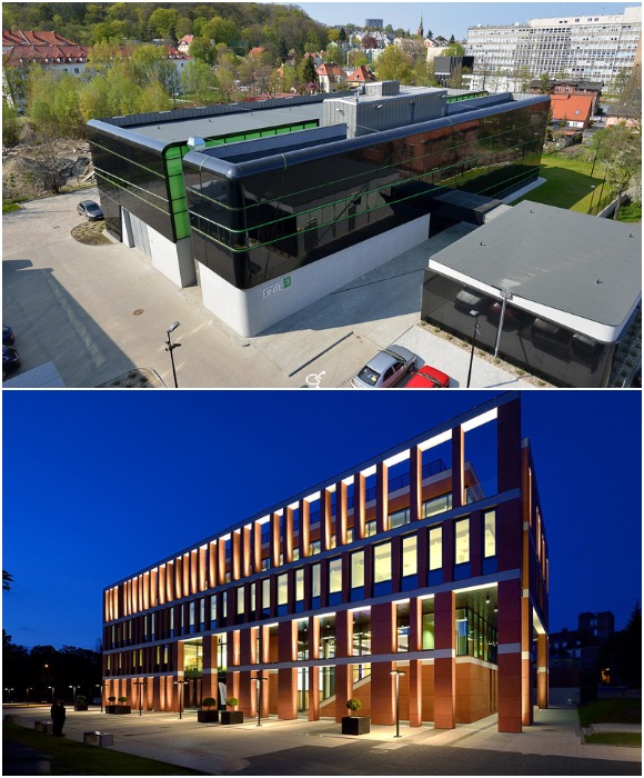 Здания Лаборатории электроэнергетики и возобновляемых источников энергии ЛИНТЕ-2 и Центра нанотехнологий (Gdansk University of Technology, Польша).