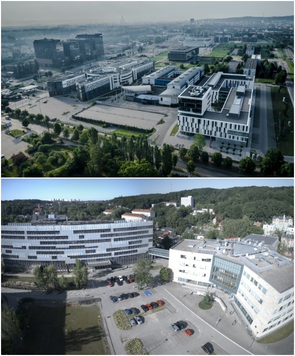 Вид с воздуха на главное здание Гданьского технологического университета (Польша). | Фото: app.spaceimpulse.com.