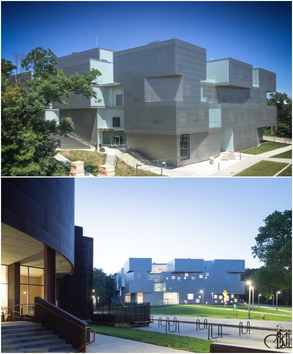 Если миф о сотворении Силиконовой долины начинается с гаража Стива Джобса (теперь это историческое место), то миф о сотворении кампусов начинается с кампуса Building 32 Массачусетского технологического института. Старое здание Центра визуальных искусств, пострадавшее от наводнения, было снесено и заменено на новый футуристический комплекс Stata Center, который спроектировал Фрэнк Гери. Именно этот удивительный архитектурный ансамбль положил начало экспериментам в проектировании нестандартных корпусов университетских кампусов. Новый корпус для Школы искусств Университета Айовы STEM, получивший название Building 20, стал примером того, как можно совмещать ветхую эстетику с ультрасовременными технологиями в области строительства и экстраординарные веяния в искусстве.