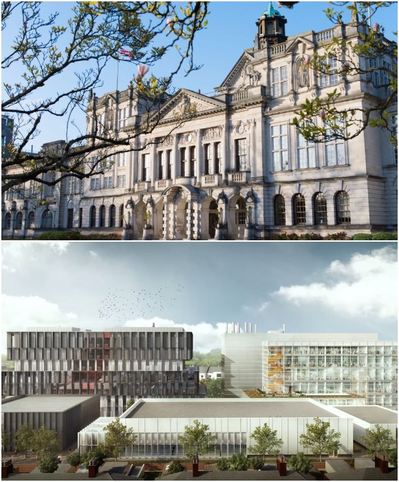 Строительство нового корпуса The Diamond на месте исторического здания вызвало немало споров и противоречий (Sheffield University, Великобритания).