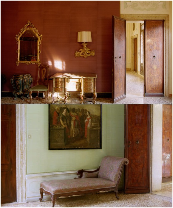 В Palazzo Bragadin постарались сохранить ту обстановку, которая царила здесь на протяжении последних веков (Венеция, Италия). Palazzo Bragadin был построен в 1342 г. и возводили его для Джованни Брагадина ди Сан-Кассиана – епископа Вероны и Патриарха Венеции. Величественные формы средневекового дворца, старинная отделка и антикварная мебель – все это именитый кутюрье, привыкший принимать смелые решения, не просто приобрел, он постарался сохранить аутентичный стиль, без особых вмешательств в структуру здания и оформление интерьеров. Здесь можно увидеть фамильный герб с мраморными скульптурами, портал из тесаного камня работы Микеле Санмикели, которые принадлежали еще первым владельцам дворца.
