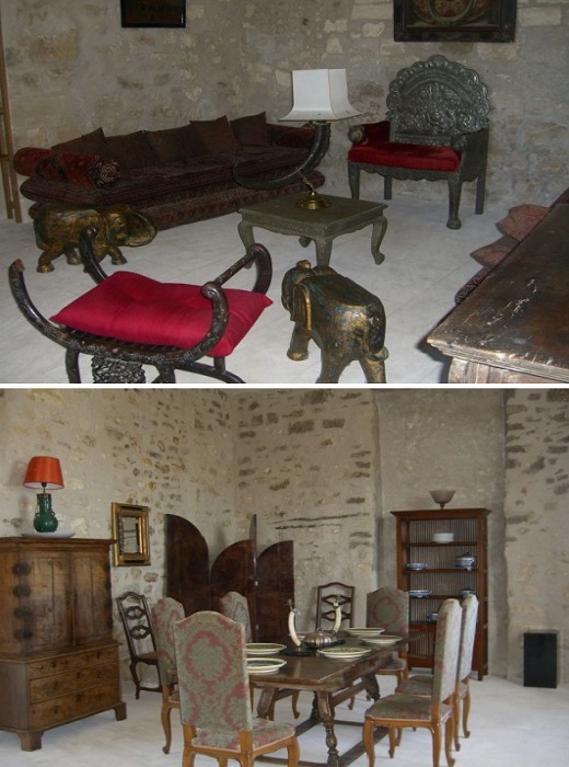 Украшательством интерьеров Пьер Карден не стал заниматься, стараясь сохранить атмосферу времен маркиза де Сада (Castle Marquis de Sade’s Lacoste, Франция).