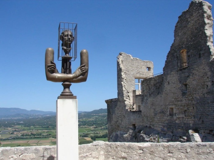 На территории замка Лакост установлено несколько скульптур, одну из которых создал российский художник А.Н. Бурганов (скульптура маркиза де Сада, который треть жизни был узником) | Фото: le-clos-des-lavandes.com.