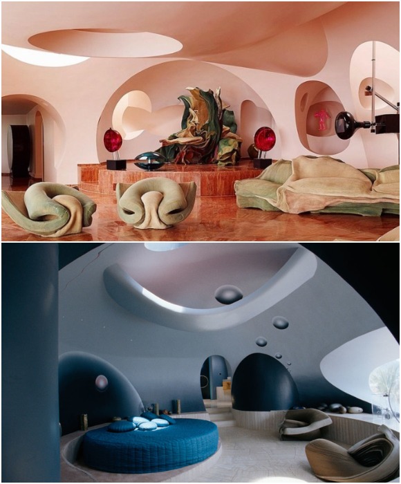 Эффектная мебель, созданная самим владельцем футуристического «Дворца пузырей» (Лазурный берег, Франция).