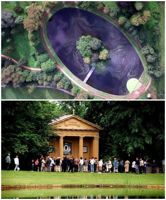 Усыпальница принцессы Дианы находится в родовом поместье Althorp House среди рукотворного озера (Northamptonshire, Великобритания).